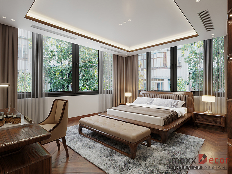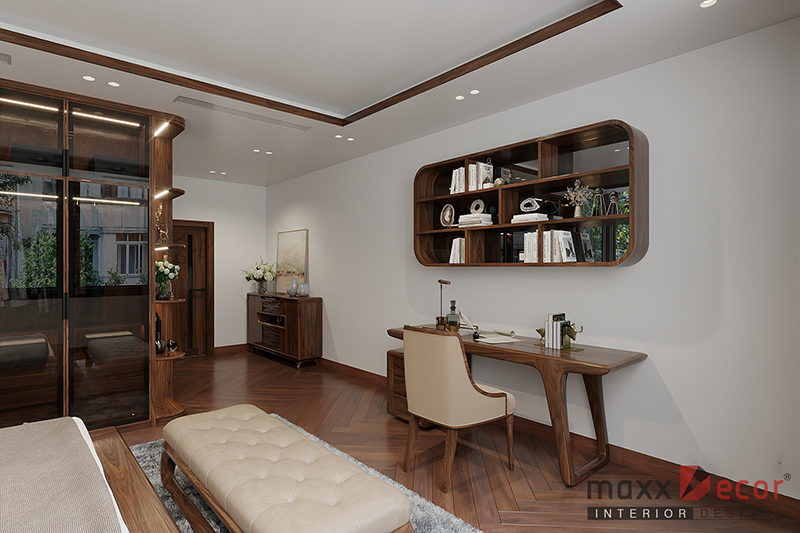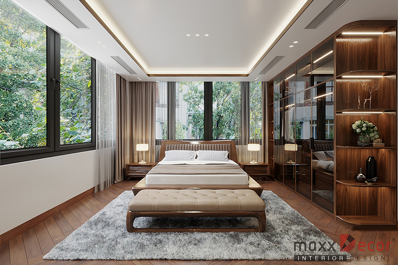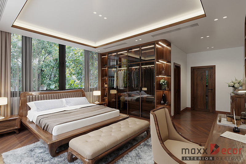 Thiết kế nội thất phòng ngủ với nội thất gỗ óc chó là sự lựa chọn hoàn hảo và tuyệt vời để tạo nên không gian nghỉ ngơi thư giãn, sang trọng và đẳng cấp.